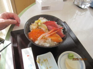 昼食は、はこだて恵山ホテル恵風にて、天丼、海鮮丼、松花堂弁当のメニューからそれぞれお好みで選びました。