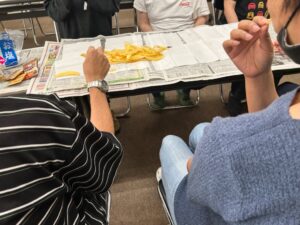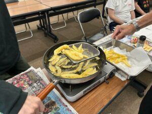 当日参加したご利用者は、自ら皮むきし揚げたポテトを味見しました。